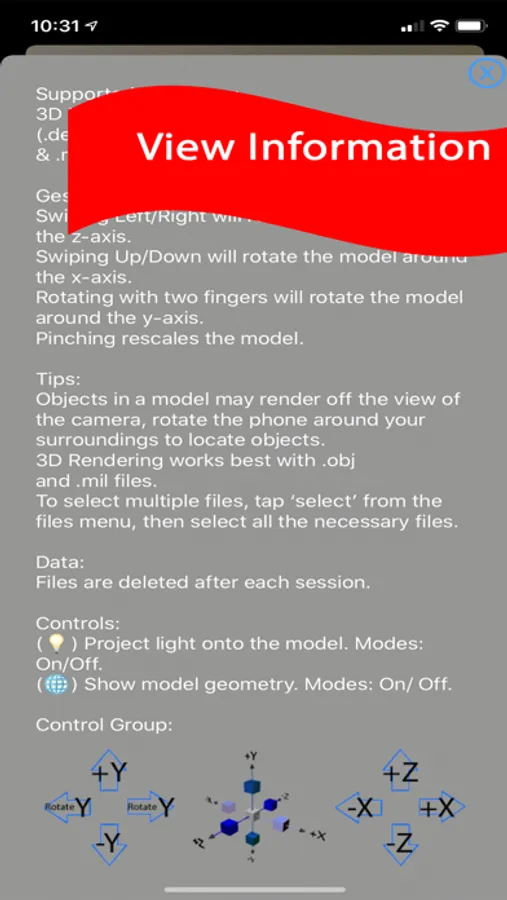 Use gestures to scale the object to the correct size, flip the object along the X Y Z axis, and rotate the object.