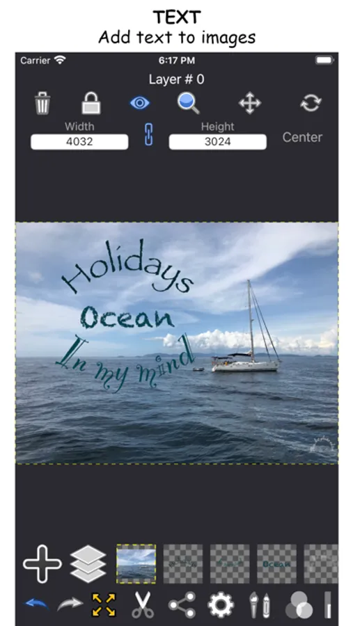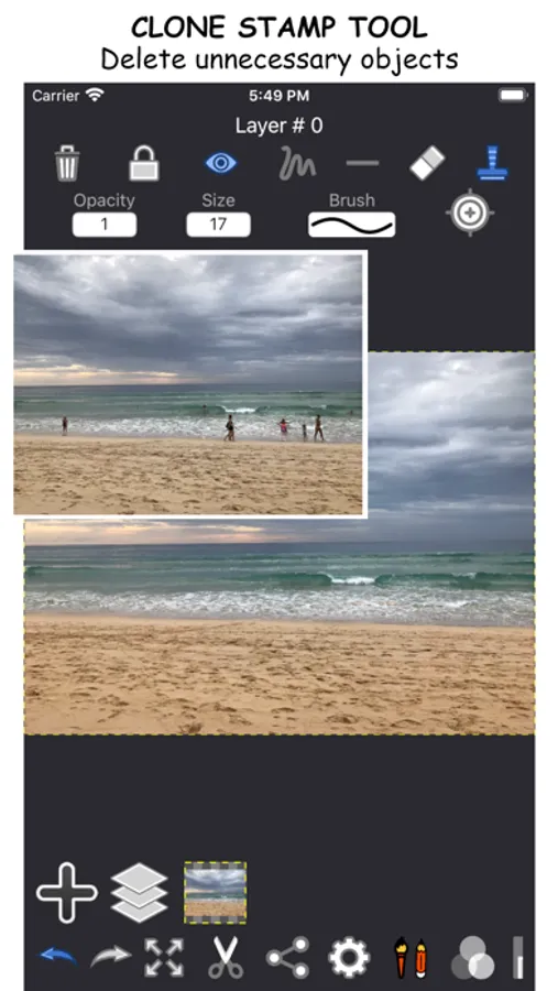 • Edit layers using scaling, cropping, moving, rotating, copying, mirroring.