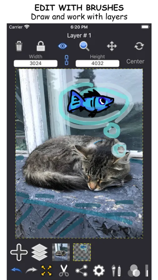 • Set your own canvas size or stretch it to fit the size of the layers.