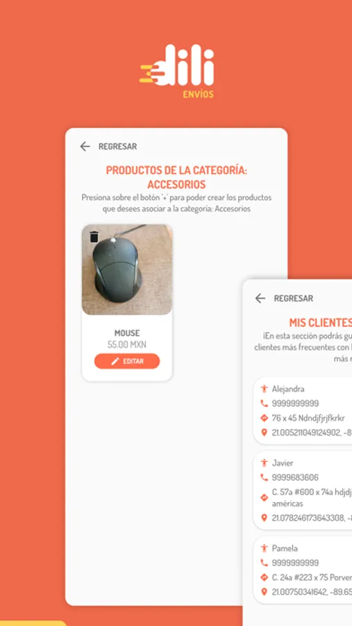 La app los ayuda a estandarizar los acuerdos del envío como: ver características del envío (distancia, tiempo, etc..) y del producto (tipo y peso). Podrán los comercios tener un rastreo en tiempo real sobre los envíos que haya solicitado al diligenciero, firmas de entrega y recibido de un producto entre ambos. Conexión de un chat, reportes y calificación de un usuario a otro.