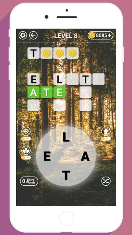 4. Have difficulty coming up with the word games? You can use coins to buy a hint to help sovle the level.