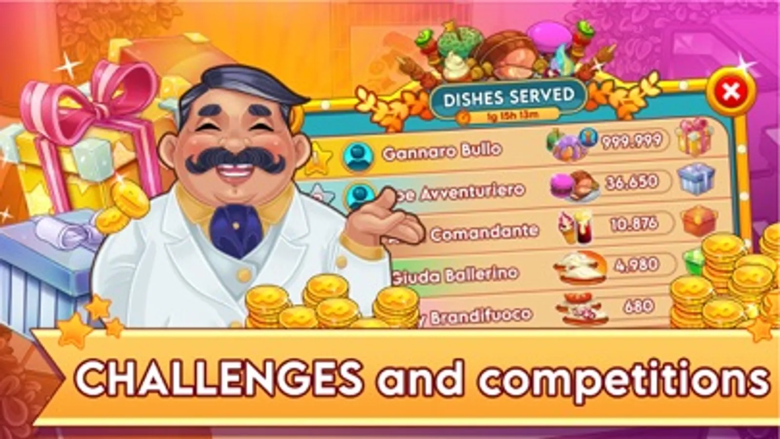 Bake pizza in the City, grill sausage and skewers in a Medieval village, serve fish and octopus in the Pirate Ship! Tap as fast as you can to serve customers with different needs and tastes.