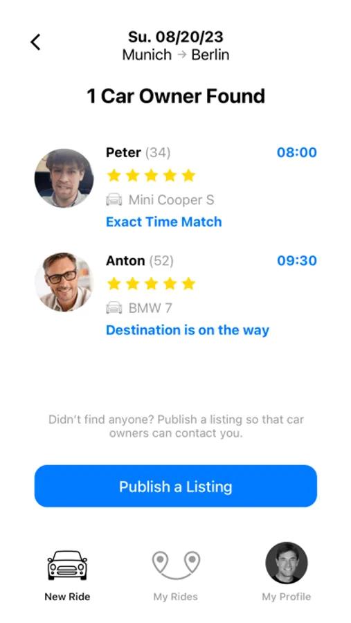 • Create a personal profile to find car owners/drivers who match your personality and interests
