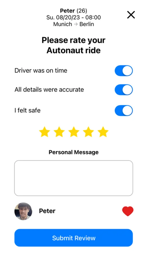 Important: Please note that Autonaut does currently not offer insurance outside of Germany. All corresponding rides are to be considered private arrangements.