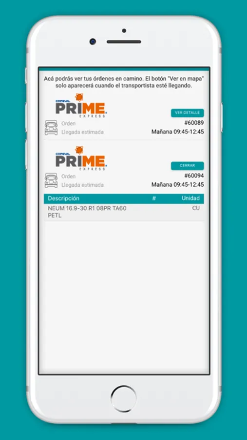 - Ver datos de la persona y el vehículo que harán la entrega.