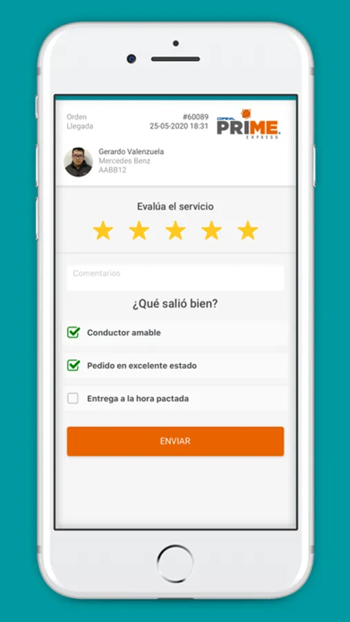 - Podrás evaluar la entrega e incluso agregar un comentario para que tus proveedores mejoren su servicio.