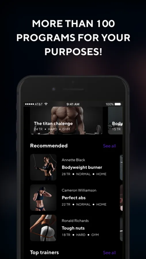 100+ programs and workouts, aimed to improve your appearance and physical condition. We are constantly adding new programs, selecting trainers with impressive performance.