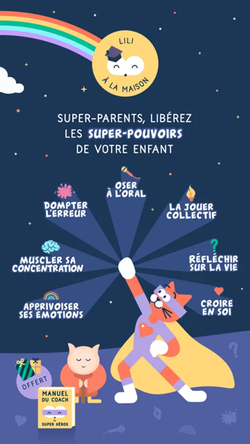 7 super-programmes pour aider votre enfant à acquérir ses super-pouvoirs. Mieux vivre ses émotions, dépasser sa timidité ou s’affirmer en groupe, autant de forces essentielles pour son bien-être et sa réussite académique et professionnelle. Le Manuel du coach de super-héros vous est offert avec des conseils d’experts en pédagogie et en neurosciences