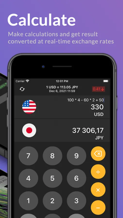 - Calculator & converter - to quickly make any calculations and get result converted at the current exchange rate