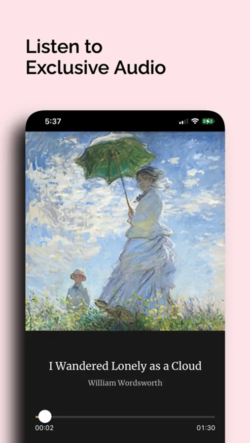 We have a growing collection of professional audio recordings for the poems in our library, and introduce a smooth experience while transitioning between reading and listening.