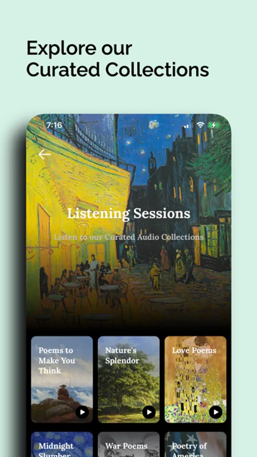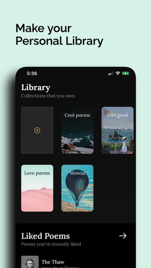 You can also create your own curated collections. You can personalize these collections by selecting from a large assortment of illustrated covers, allowing your collections to feel like personal poetry books.