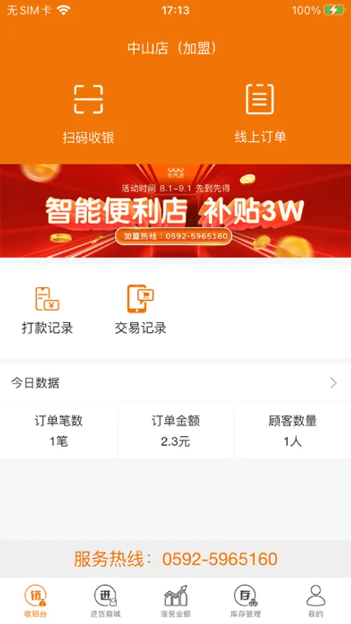 【扫码收款】 可使用支付宝、微信等多种扫码收款方式,移动收银,聚合支付。