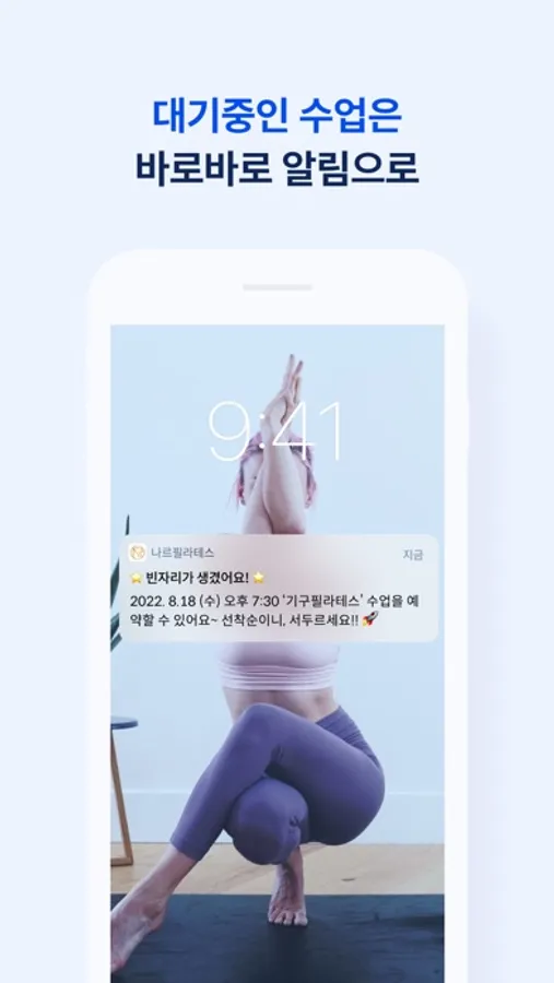 언제 어디서나 스마트폰에서 원하는 시간에 수업을 간편하게 예약하는 나르필라테스