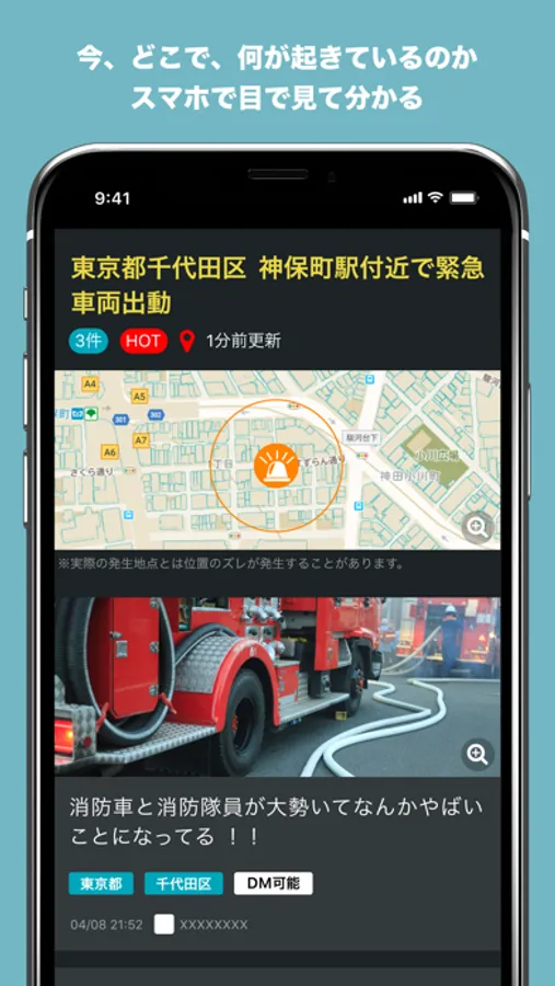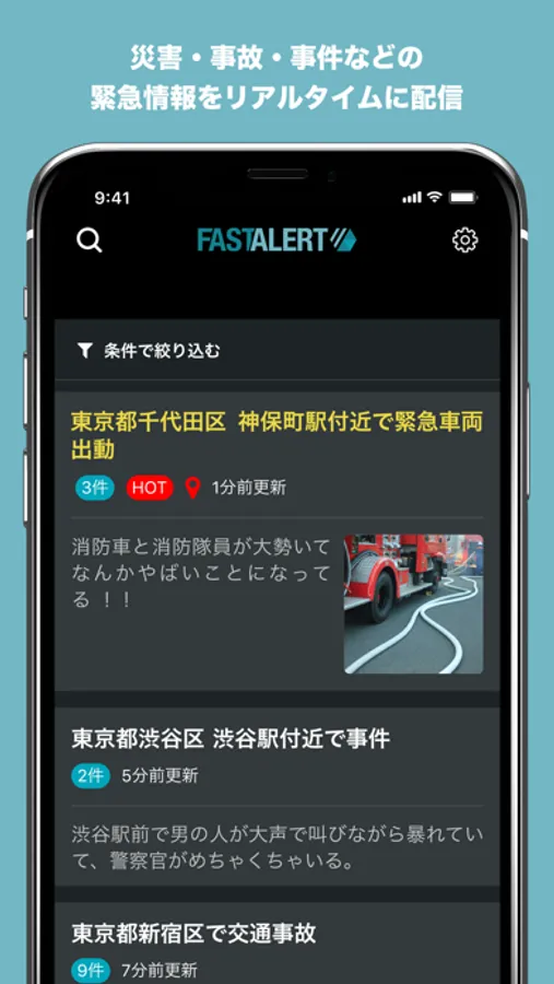 SNSなどに投稿された、災害・事故・事件などに関する情報を最速で配信しています。