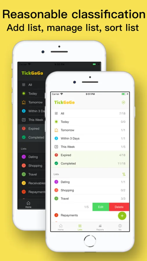 According to the expired date, TickGoGo divides the to-do items into today's to-do, nearly 3 days to-do, this week's to-do, this month's to-do, unfinished, expired and other categories. This allows you to manage tasks more conveniently and easily, thereby improving management efficiency.