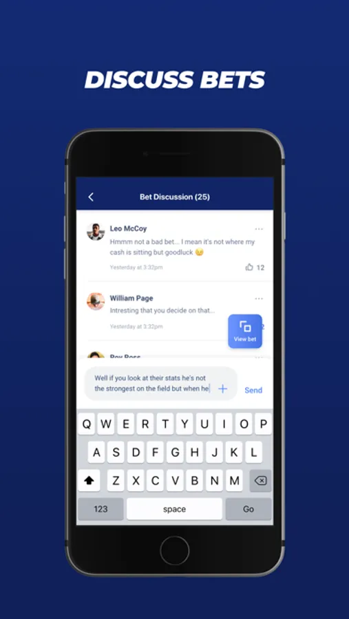 Talk to your friends about any bet on the platform. With in-built social media, you can record or attach video, images and links all at the touch of your phone