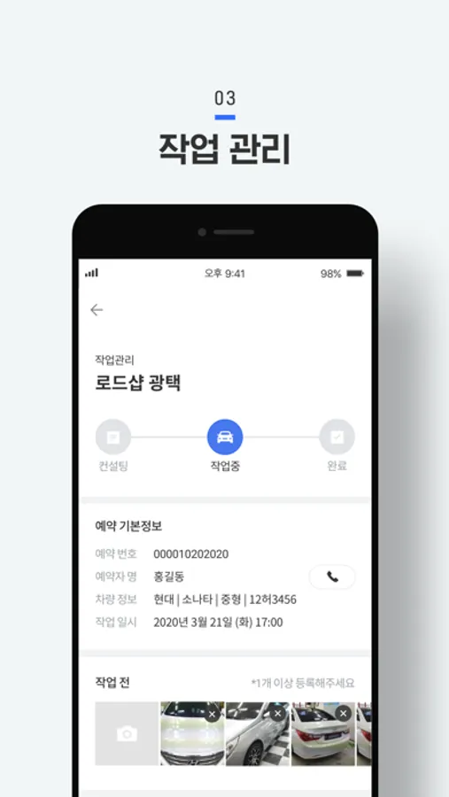 번거로운 작업 일지, 작업 사진 등 모든 디테일링 기록을 한번에 관리하세요.