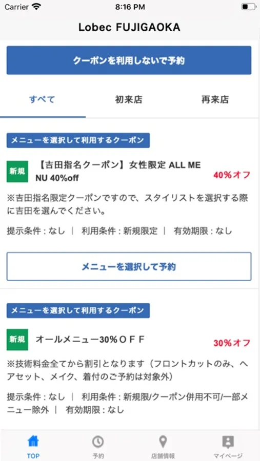 お得なクーポンが配信されます。ネット予約時にクーポン利用での予約も可能なので来店時もスムーズに施術頂けます。