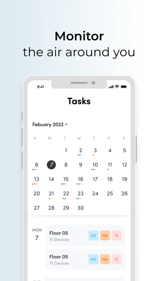 You can easily view all your devices according to locations, floors, and names. Changing modes and checking off tasks has also become much easier with a clean interface categorized by types of tasks and deadlines.