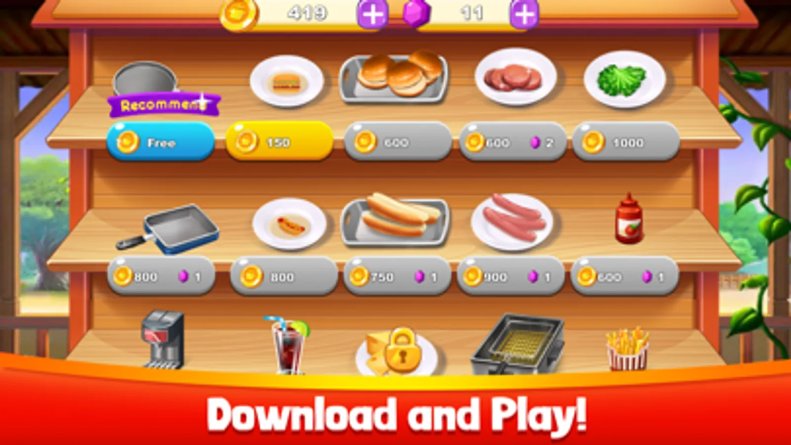 Cook food of different flavors with professional machines. Acid, bitter, sweet, or spicy. Cook hamburger, seafood, spaghetti, steak. Make cola, juice or milk tea . Make sweet ice cream cone, cupcake.