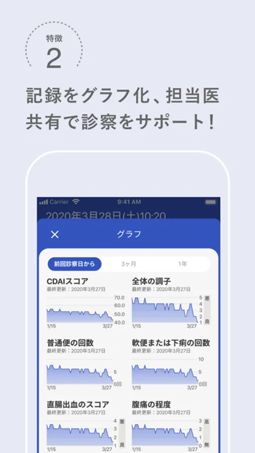 2. 記録をグラフ化、担当医共有で診察をサポート!
