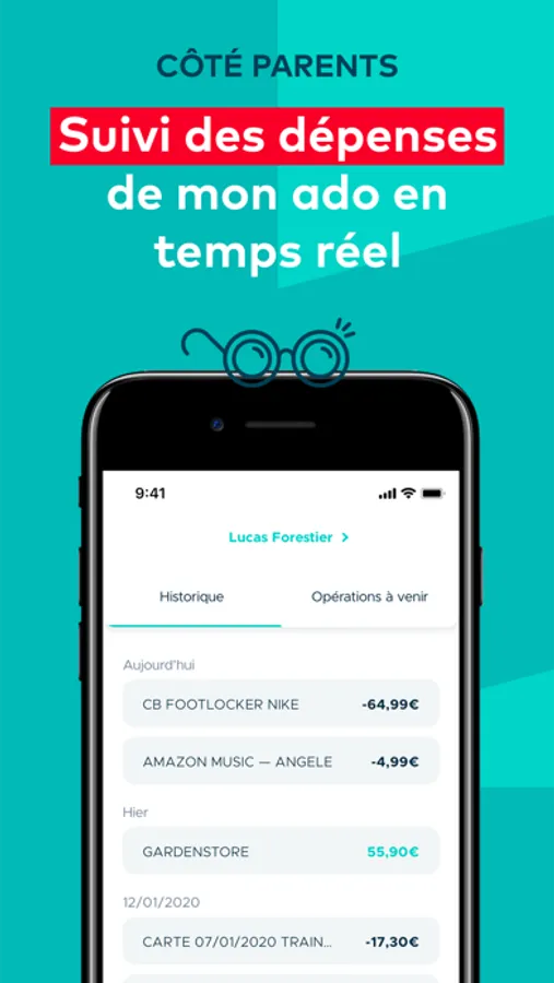 • Je check** les dépenses en temps réel de mon enfant : pas de surprise