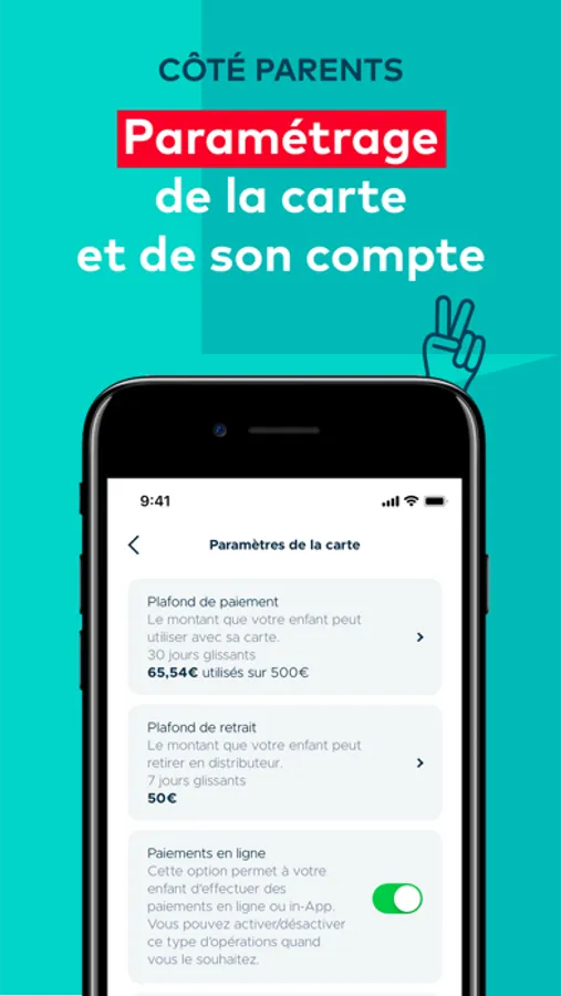 Je garde l'œil sur le compte de mon enfant et je peux suivre ses dépenses en temps réel. C'est d'ailleurs moi qui choisis le montant maximum des paiements et retraits ou s'il peut payer en ligne et à l'étranger... Je peux aussi faire opposition au moindre doute. Parent cool, mais parent quand même !