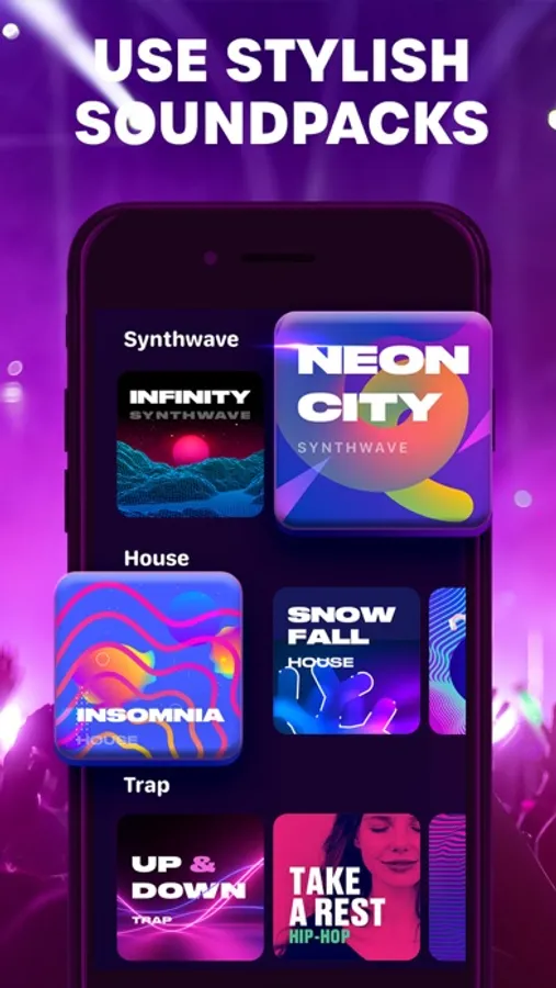 • Access a hugggge library of awesome soundtracks to use in your new music maker career. Say hello to our beat maker’s styles – hip hop, rock, electric, pop, dubstep, and even more!