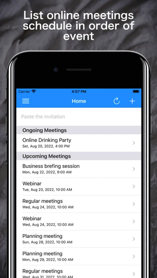 Online Meetings Schedule can be managed the schedule by simply pasting the invitation sent by e-mail etc. in the text box of the application.