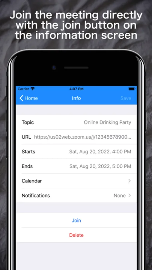 2. Join the meeting by tapping the "Join" button on the info screen of the meeting or the notification screen of the start time