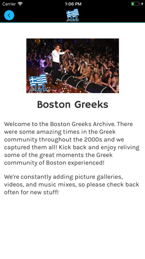 Boston Greeks was created to let everyone relive the amazing Greek nightlife scene of Boston from the years of 2000 until today! We have picture galleries, videos, a Greek blog, and so much more! If you were there, you know how great this app is. If you weren't, get ready for a trip to the greatest moments in Greek nightlife the city of Boston ever had!