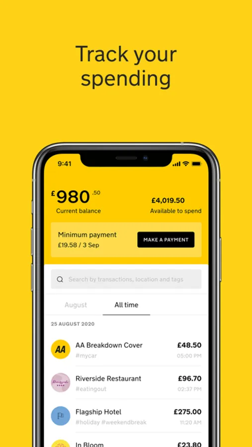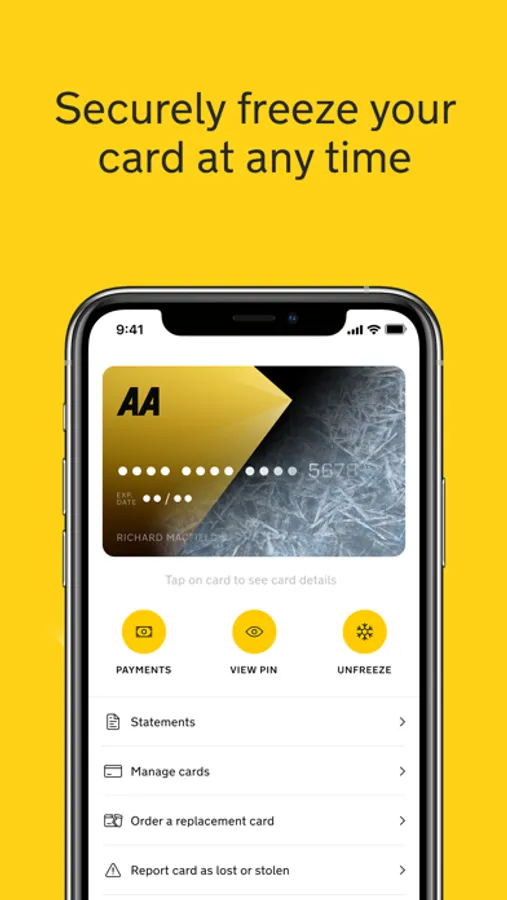Welcome to the new AA Credit Card. With the new app, you’ll be able to stay on top of your spending, search and tag transactions, and choose how you make payments. You can be reassured that your money is safe, with security features built-in as standard.
