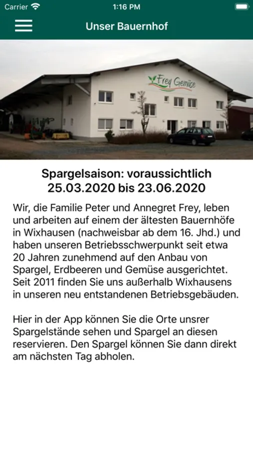 In unserer App finden Sie nicht nur die Adressen und Öffnungszeiten unserer Verkaufsstände, auch kann Spargel reserviert werden. So gehen Sie sicher, dass Sie den Spargel sicher am Stand abholen können.