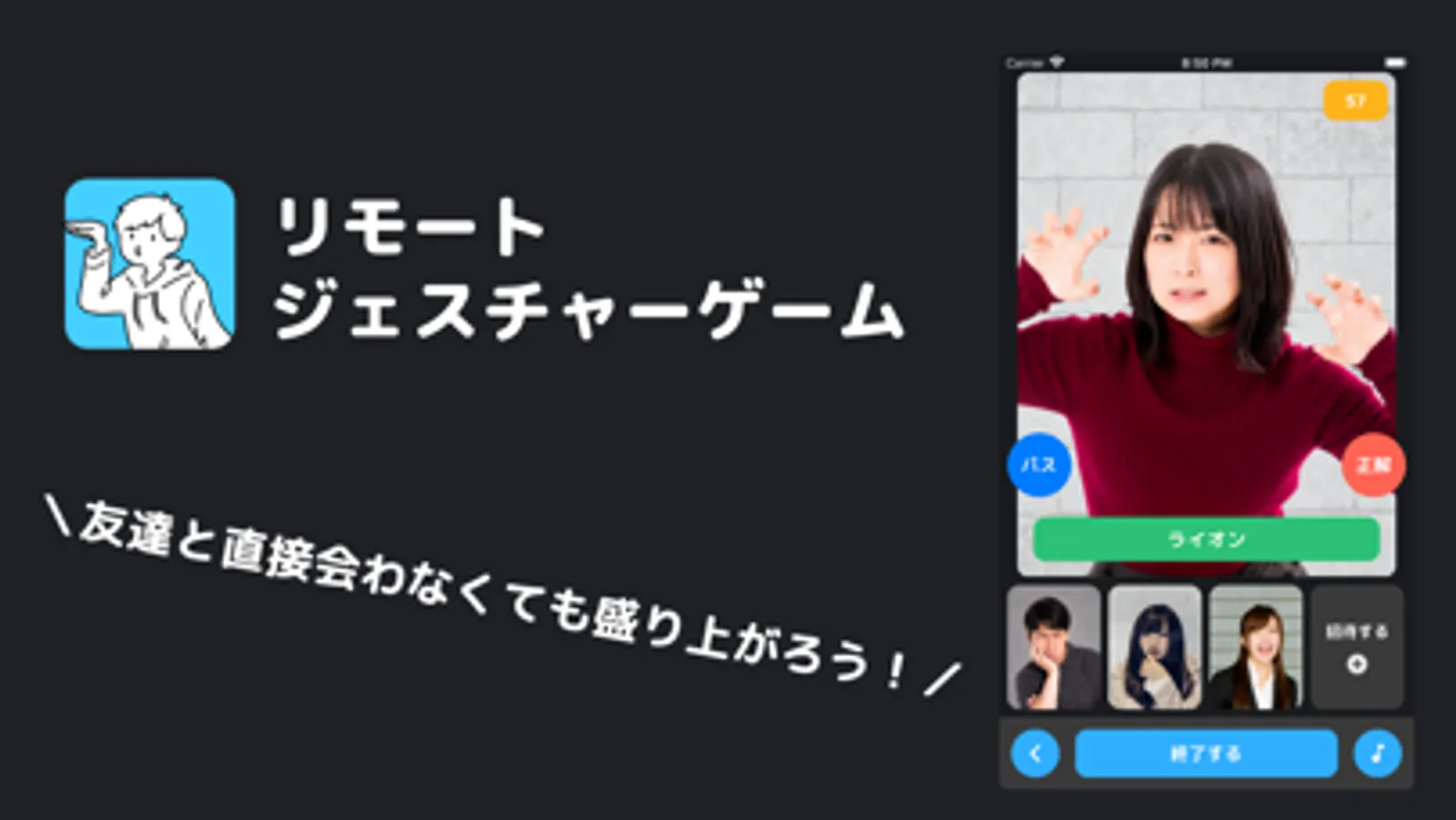アプリに表示されたお題をみんなにジェスチャーで伝えて当てあおう!