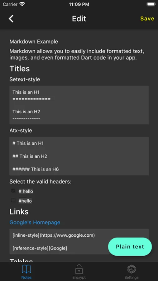 - Users can format their notes using the Markdown syntax which is a lightweight markup language.