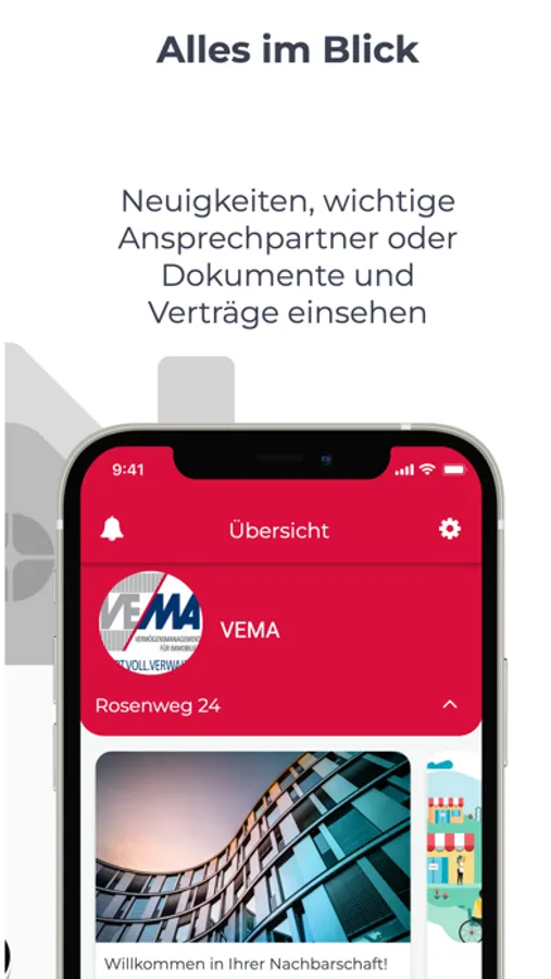 Willkommen in der digitalen Welt von Ihrer VEMA GmbH. Hier erhalten Sie alle relevanten Informationen rund um Ihr Mietobjekt!