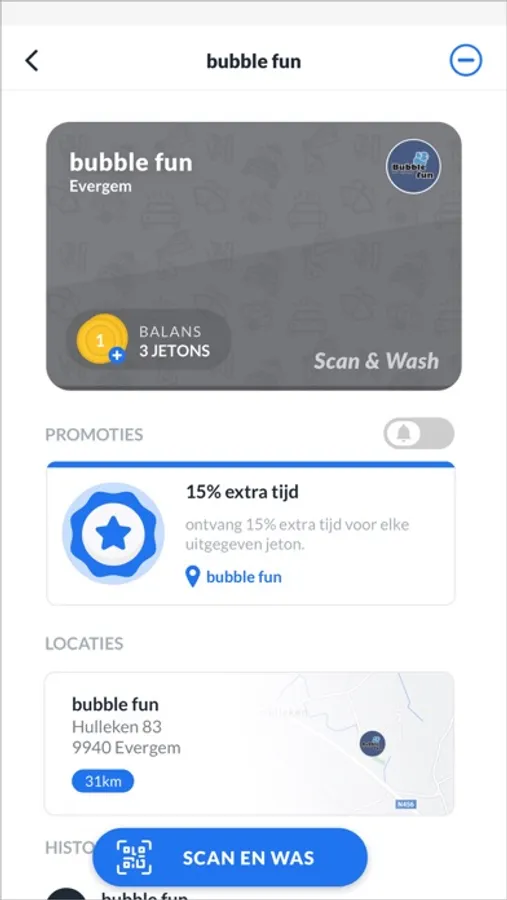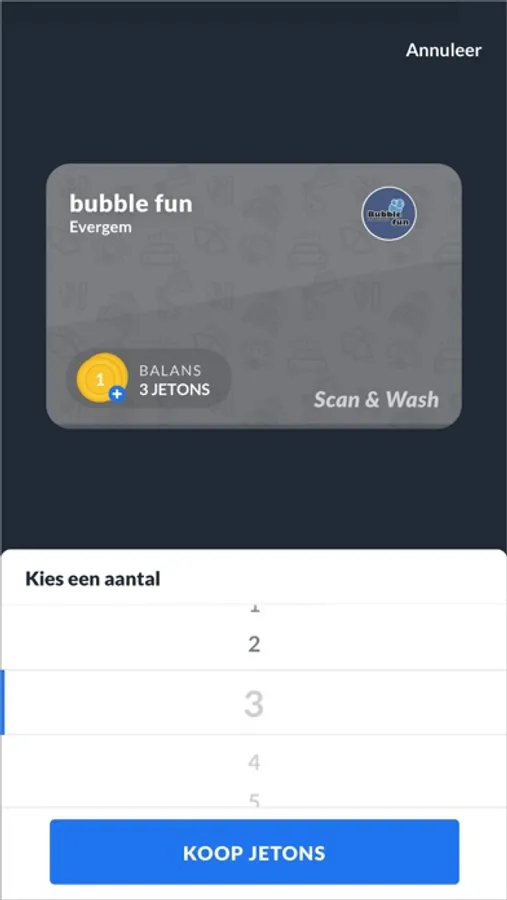 Thanks to the scan & wash app, you can select your desired car wash from the list and purchase digital coins. Scan a QR code at the wash box and choose how many coins you want to insert. The wash box will start.