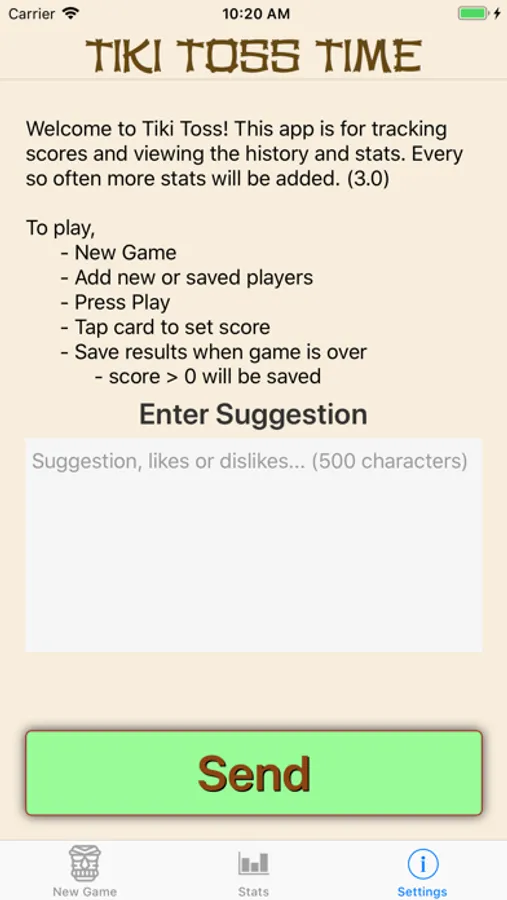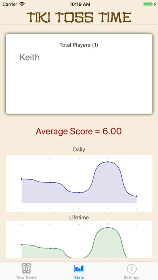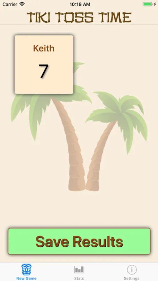 Welcome to the TIKI TOSS game. This is the game where you swing the ring on a string to see how many times it takes to get it on the hook. This app allows you to record each players score and save it to the cloud. You can see stats like the players average score for hooking the ring. Also, see the history of your throws daily and over the last 50 throws. New upgrades will be added frequently and feel free to suggest new ideas, so enjoy the app.