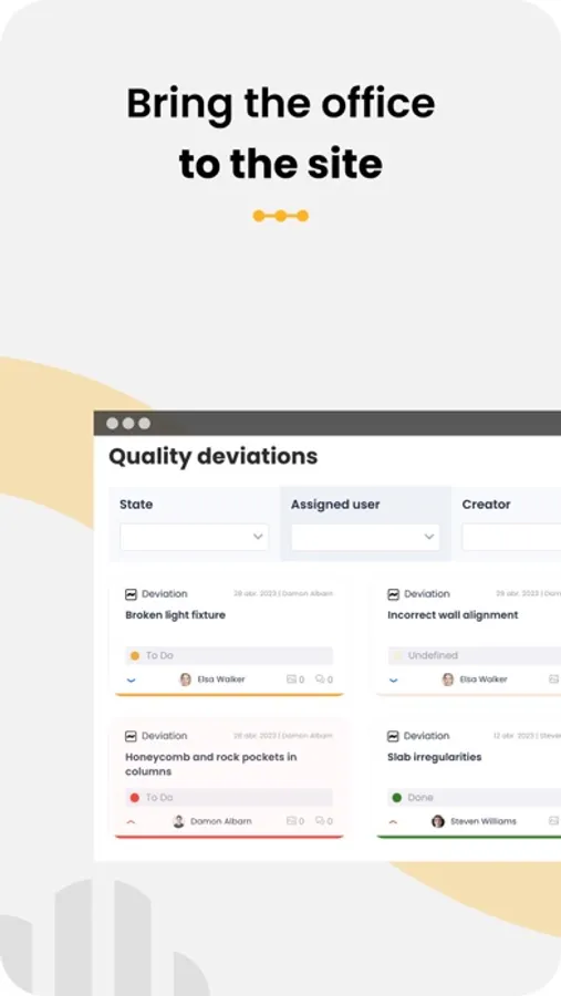 Control your workiste remotely and access project metrics in real time. Save costs optimizing and avoiding overcosts and delays.