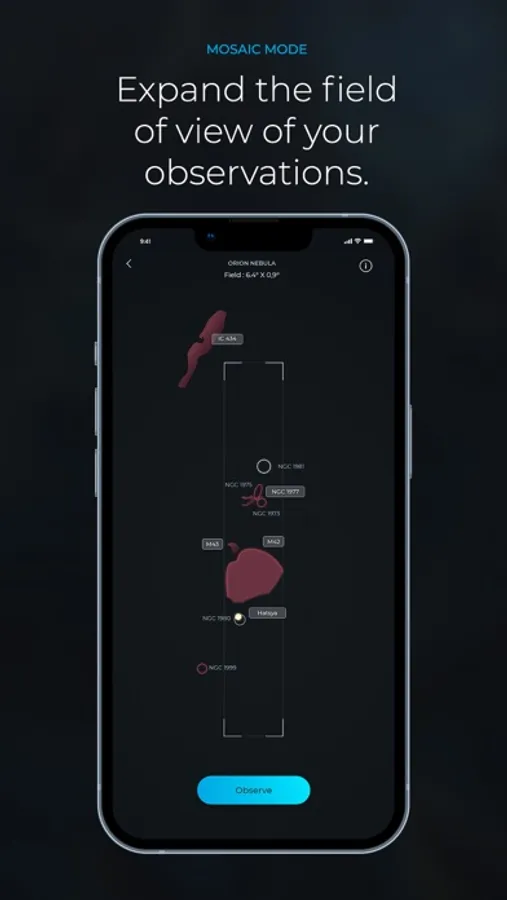 This unique patented technology, developed by Vaonis, allows you to take several photos of a same stellar region and then automatically stitch them together, thus offering users a larger view (field) of the universe.