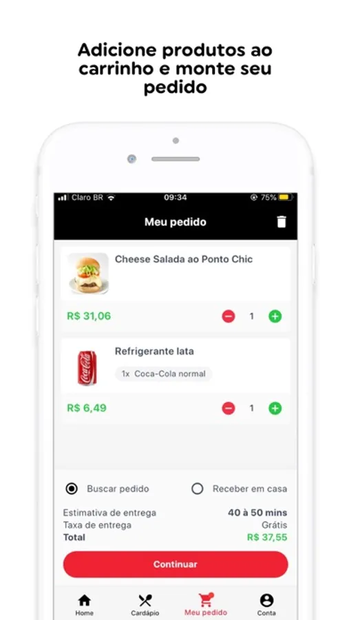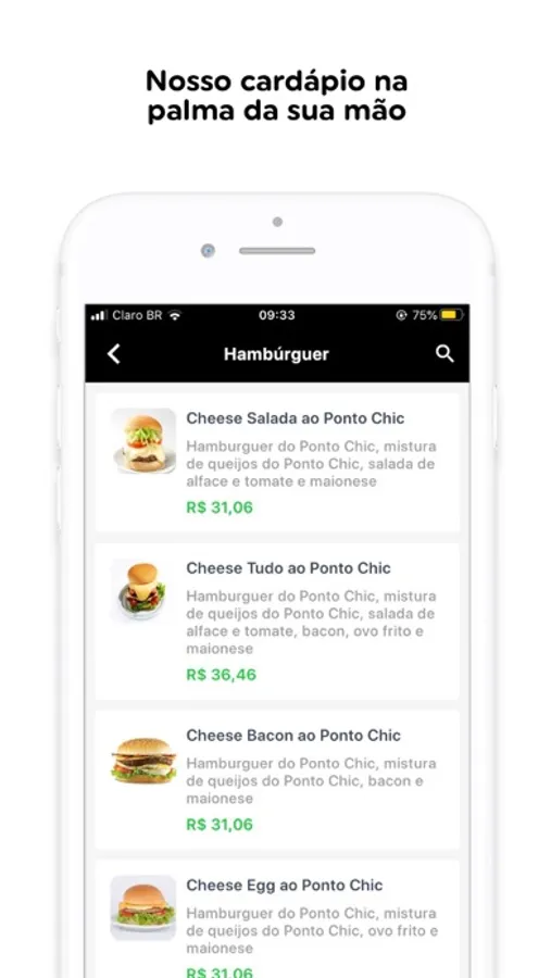 No app, você encontra de forma rápida o cardápio completo e ainda pode utilizar a ferramenta de busca para localizar diretamente os produtos que você deseja.