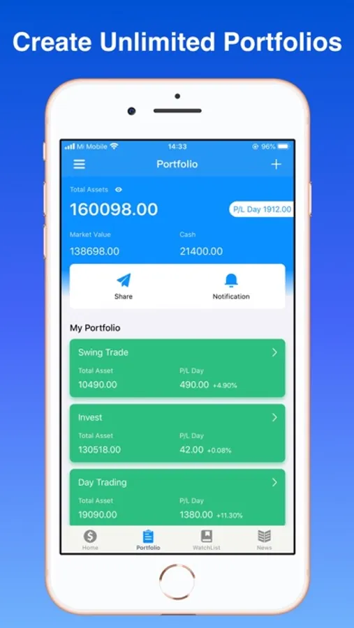 PORTFOLIO: You can create unlimited stocks and ETF portfolios as you want, it is a great stock market game tool for day traders and long term investors