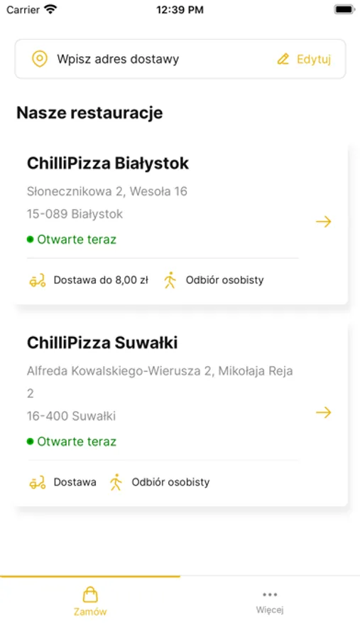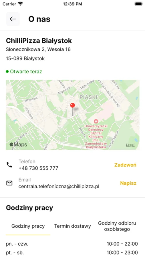 Oprócz zamawiania online aplikacja pozwala sprawdzić:
