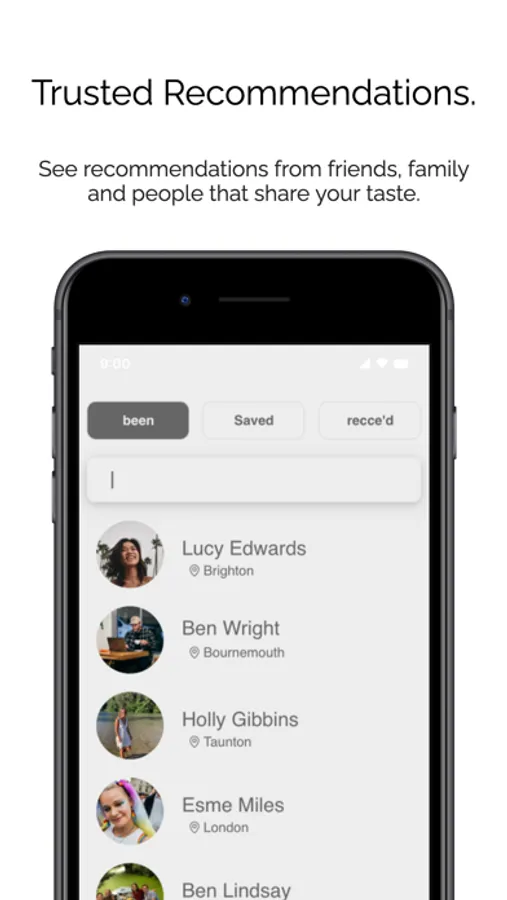 Trusted recommendations - connecting recce to your social network will empower you to see exactly who has been, who has saved it to their profile, and what they'd recommend it for.