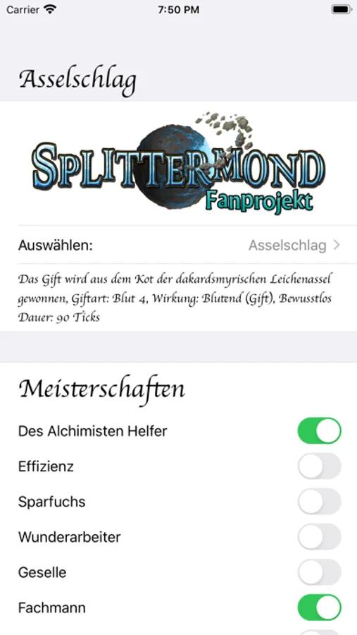 Mit dem Fanprojekt zum "Pen and Paper" Rollenspiel Splittermond aus dem Uhrwerkverlag bringe ich euch eine App zur Unterstützung beim Ausrechnen von Alchemie Proben.
