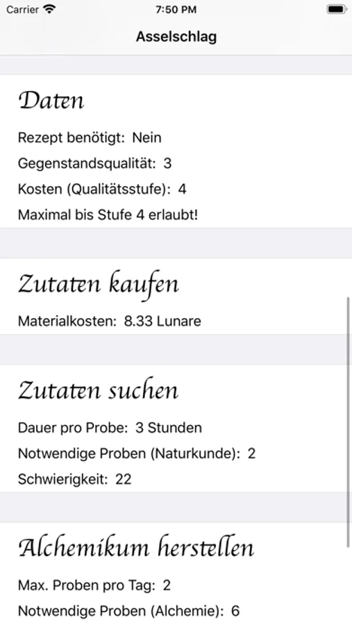 Die Rezepte geben euch auch eine Erklärung über die Wirkung und die Kosten, die euch bei der Herstellung erwarten. Ob ihr nun die Zutaten kauft oder gar selber sucht. Beide Varianten werden hierbei berücksichtigt.