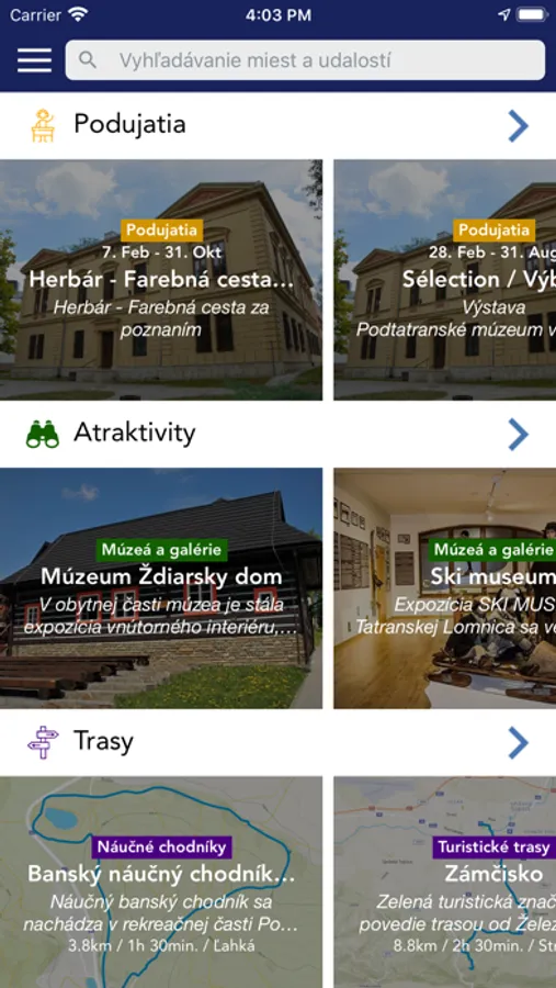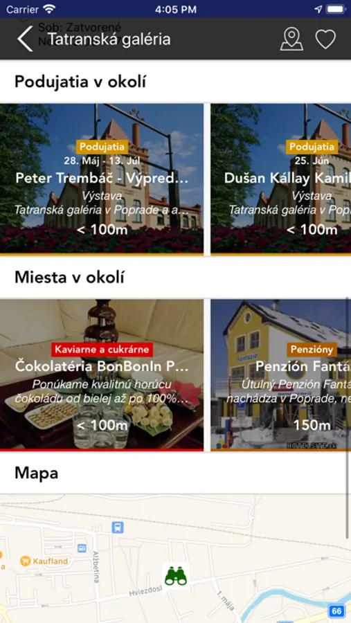 Oficiálna aplikácia Visit Poprad vám vždy ponúka aktuálny zoznam podujatí, atraktivít, ubytovania, stravovacích zariadení a trás.