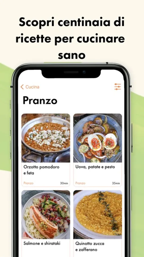 Tantissime ricette in chiave healthy a prova di goloso, facili e veloci da preparare e suddivise per momento della giornata/occasione. Potrai filtrare le ricette per ingrediente, per apporto calorico e tanto altro ancora.