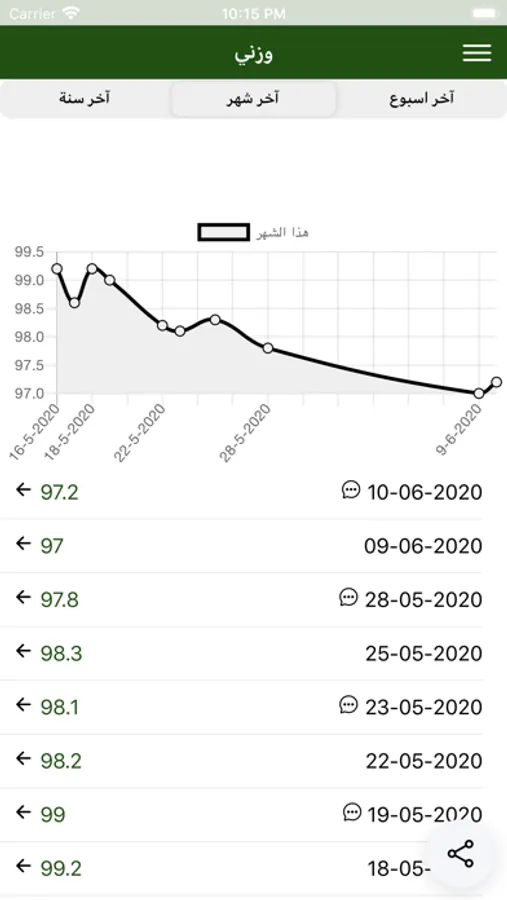 يوفر لك تطبيق وزني الأدوات المناسبة لمتابعة وزنك ، عند قيامك بإدخال وزنك بشكل دوري في تطبيق وزني يمكنك مراقبة وزنك بكل دقة وكذلك مشاهدة الرسم البياني لإتجاه وزنك ،وكذلك يمكنك مشاركة ارقامك مع طبيبك المختص او أخصائي التغذية الخاص بك ليقوم بمتابعة نظامك الغذائي.