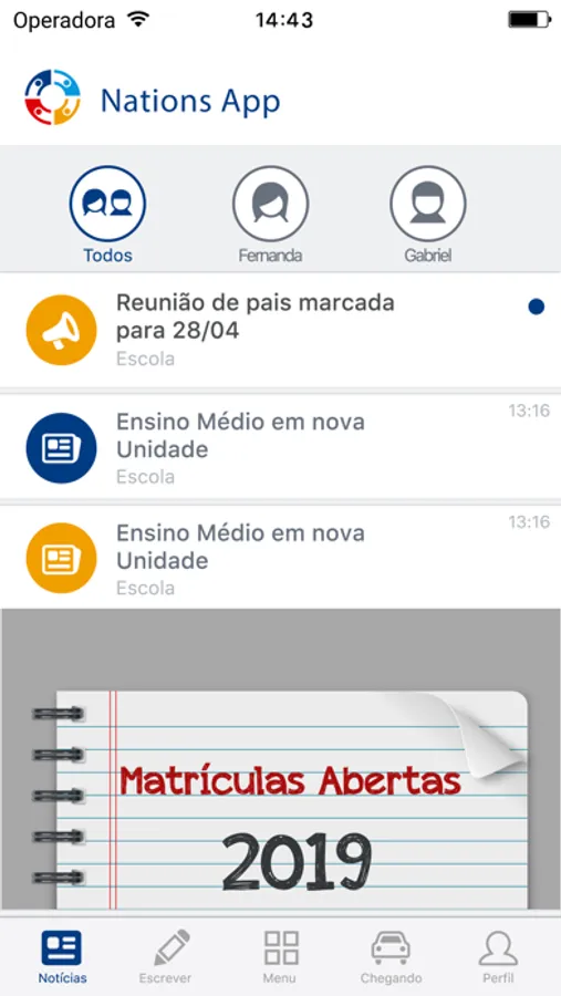 Nations App! Acesse as informações da escola através deste aplicativo.